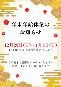 2024年12月29日(日)~2025年1月5日(日)まで、